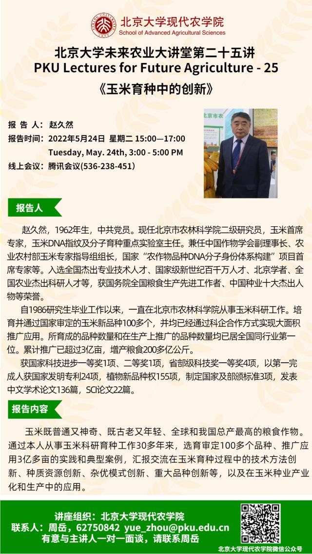 講座通知:北京大學(xué)未來農(nóng)業(yè)大講堂第二十五講——玉米育種中的創(chuàng)新