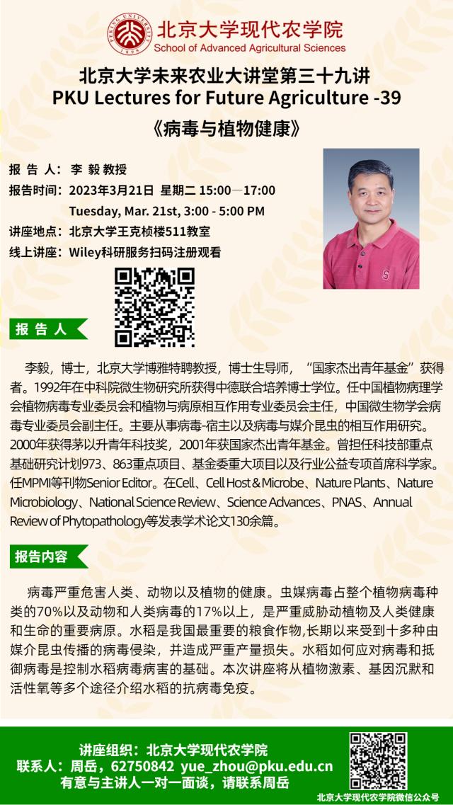講座通知:北京大學未來農(nóng)業(yè)大講堂第三十九講——病毒與植物健康