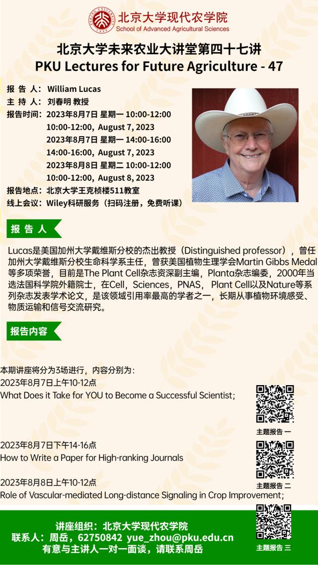 講座通知:北京大學(xué)未來(lái)農(nóng)業(yè)大講堂第四十七講