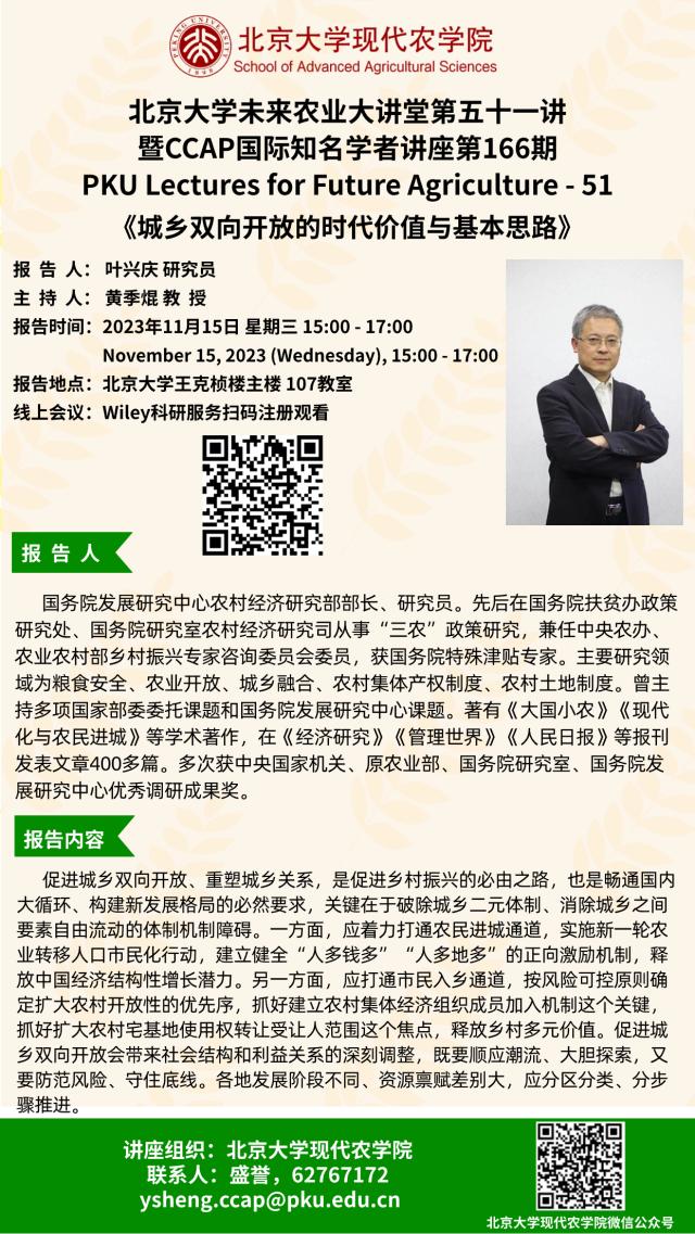 講座通知:北京大學未來農(nóng)業(yè)大講堂第五十一講——城鄉(xiāng)雙向開放的時代價值與基本思路