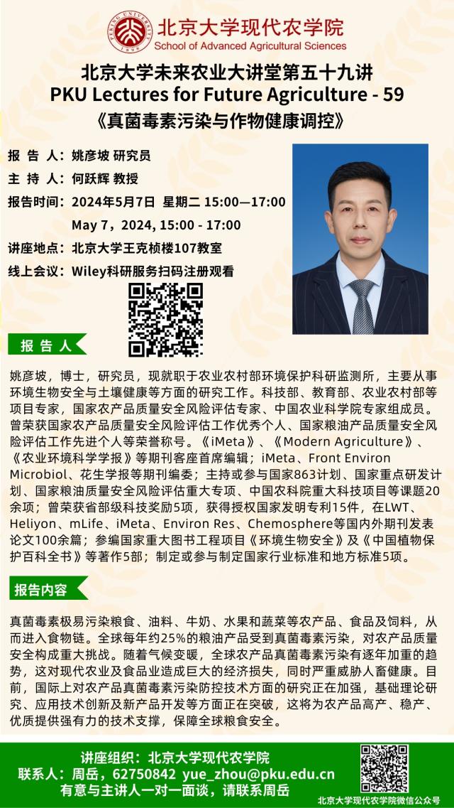講座通知:北京大學(xué)未來農(nóng)業(yè)大講堂第五十九講——真菌毒素污染與作物健康調(diào)控
