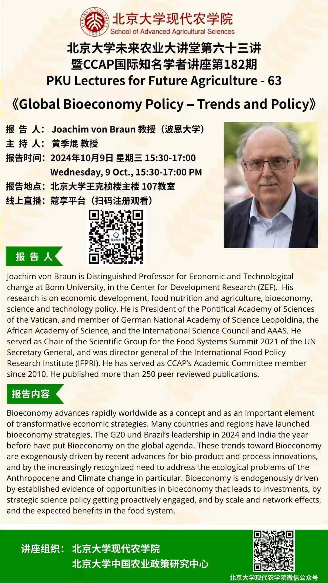 講座預告| 北京大學未來農業(yè)大講堂第六十三講暨CCAP國際知名學者講座第182期
