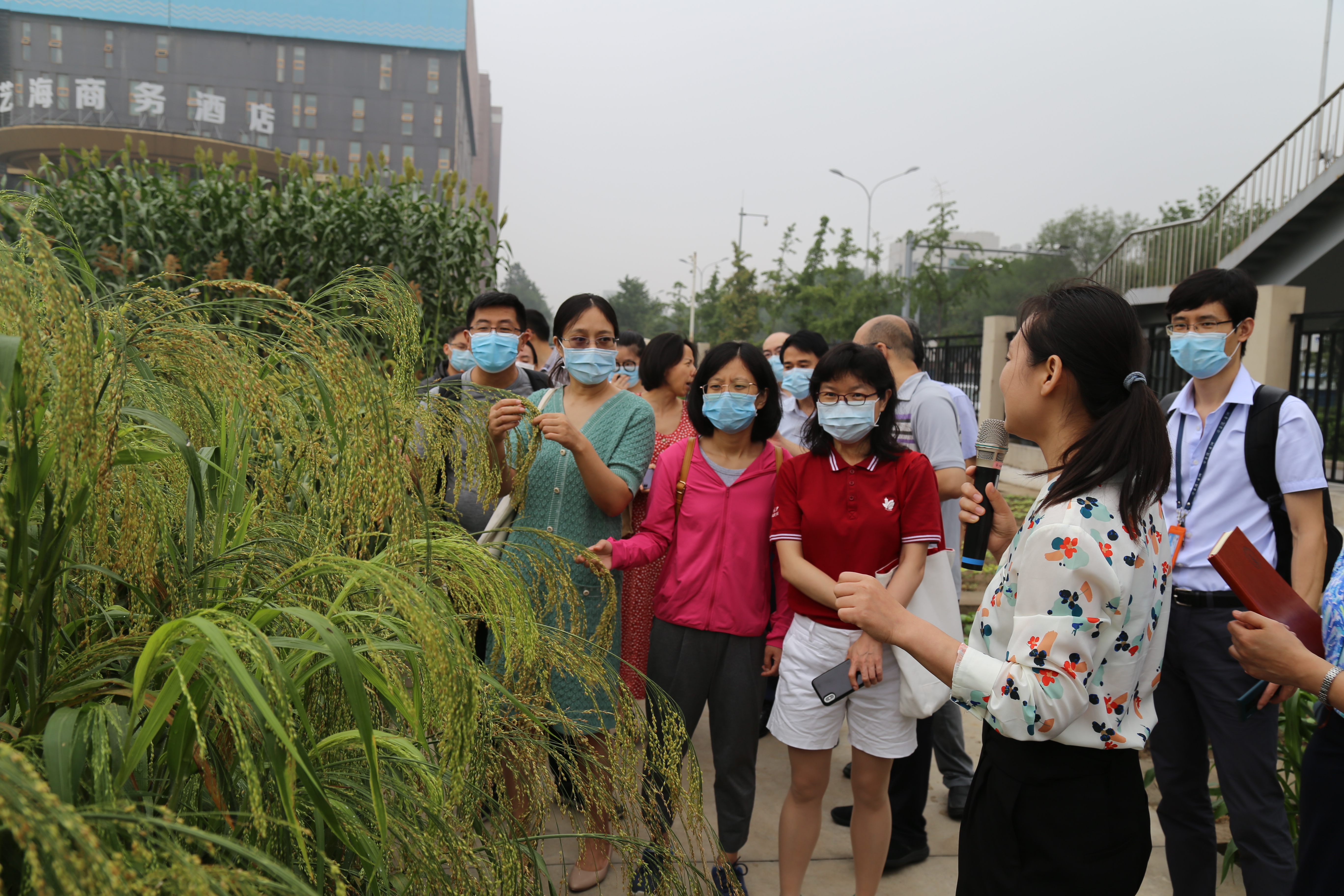 在作物科學(xué)研究所科普展示基地,學(xué)院老師們?cè)谪?fù)責(zé)人趙廣才老師的引導(dǎo)下,參觀了基地試驗(yàn)田。作科所副研究員向大家展示了高粱、水稻、大豆等80余種農(nóng)作物新品種與種植資源材料,并詳細(xì)講解了這些作物的起源、特征以及在多領(lǐng)域的用途。