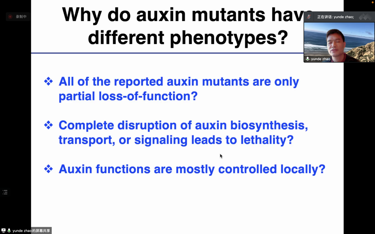 晚上的課程中,趙老師講解了生長(zhǎng)素相關(guān)的內(nèi)容,通過(guò)提出假設(shè)問(wèn)題,在從多個(gè)方面思考驗(yàn)證假說(shuō)是否為真。趙老師以YUCCA基因的研究為例,為大家介紹了不斷思考和求證的過(guò)程。同時(shí)趙老師也介紹了YUCCA基因家族中不同yucca缺失突變體組合對(duì)植物生長(zhǎng)發(fā)育的不同影響。