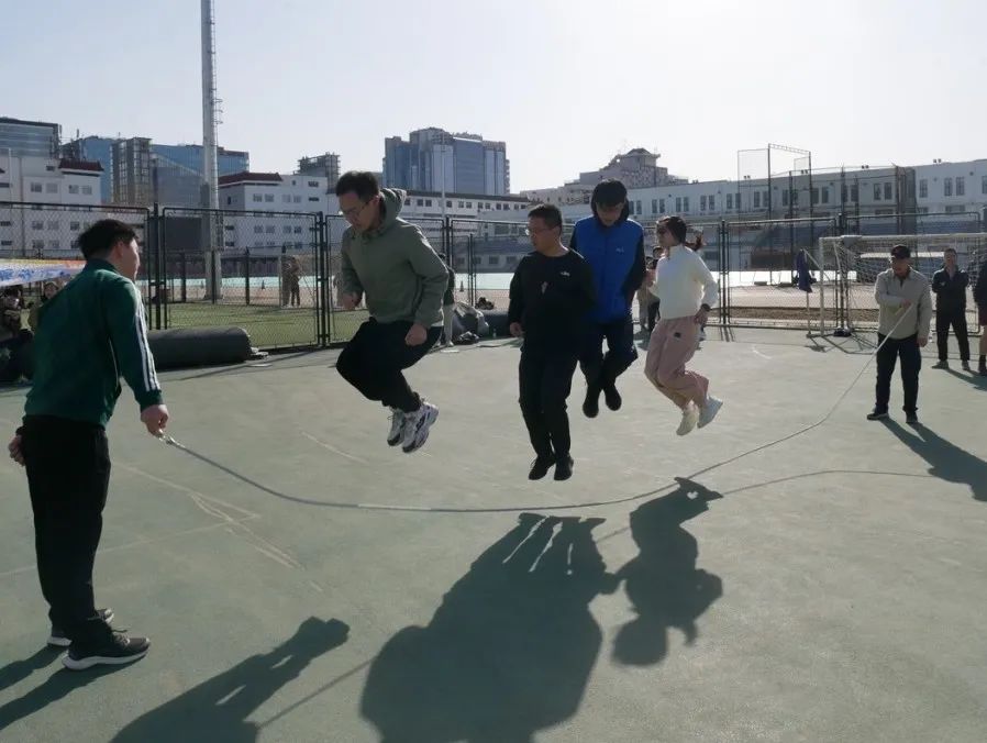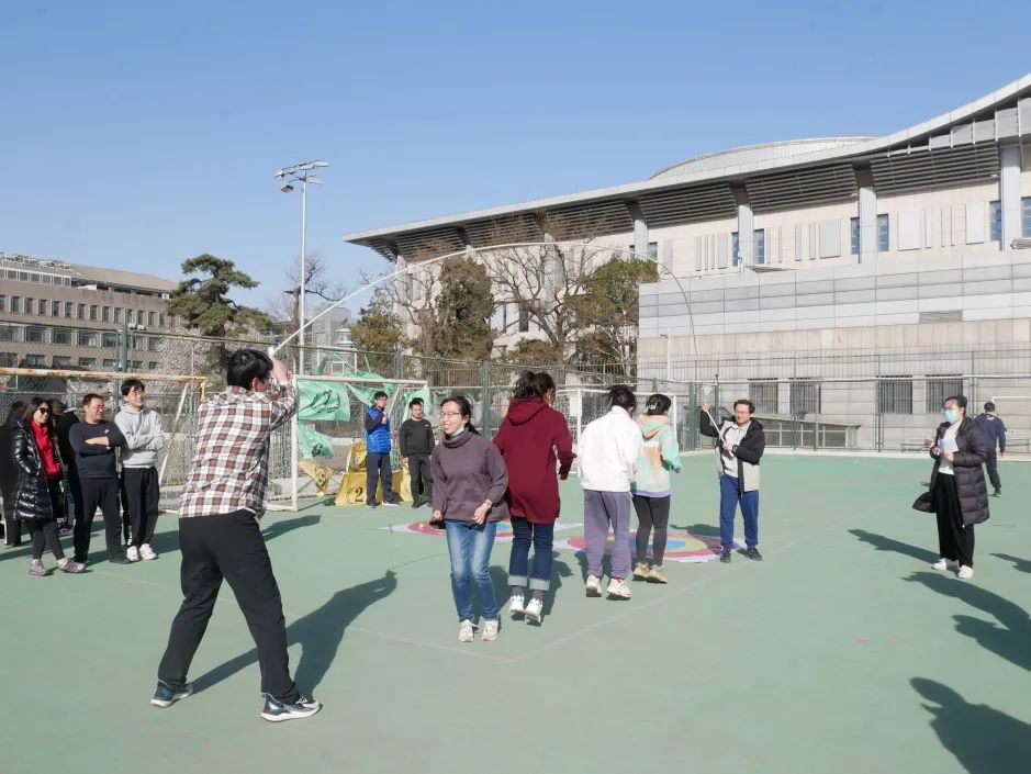 這個項目要求每隊派出2人負責搖繩,其余隊員直接站在大繩中央處跳繩,按照1分鐘內跳繩總個數(shù)進行排名。因此,這個項目綜合考驗著大家的體力、身體協(xié)調能力和默契程度。伴隨著繩子的揮動和周圍的吶喊聲,隊員們身輕如燕,節(jié)奏感十足。最終,堿基互補配對隊、好好學習組、小宇宙JR分別獲得第一名、第二名、第三名。