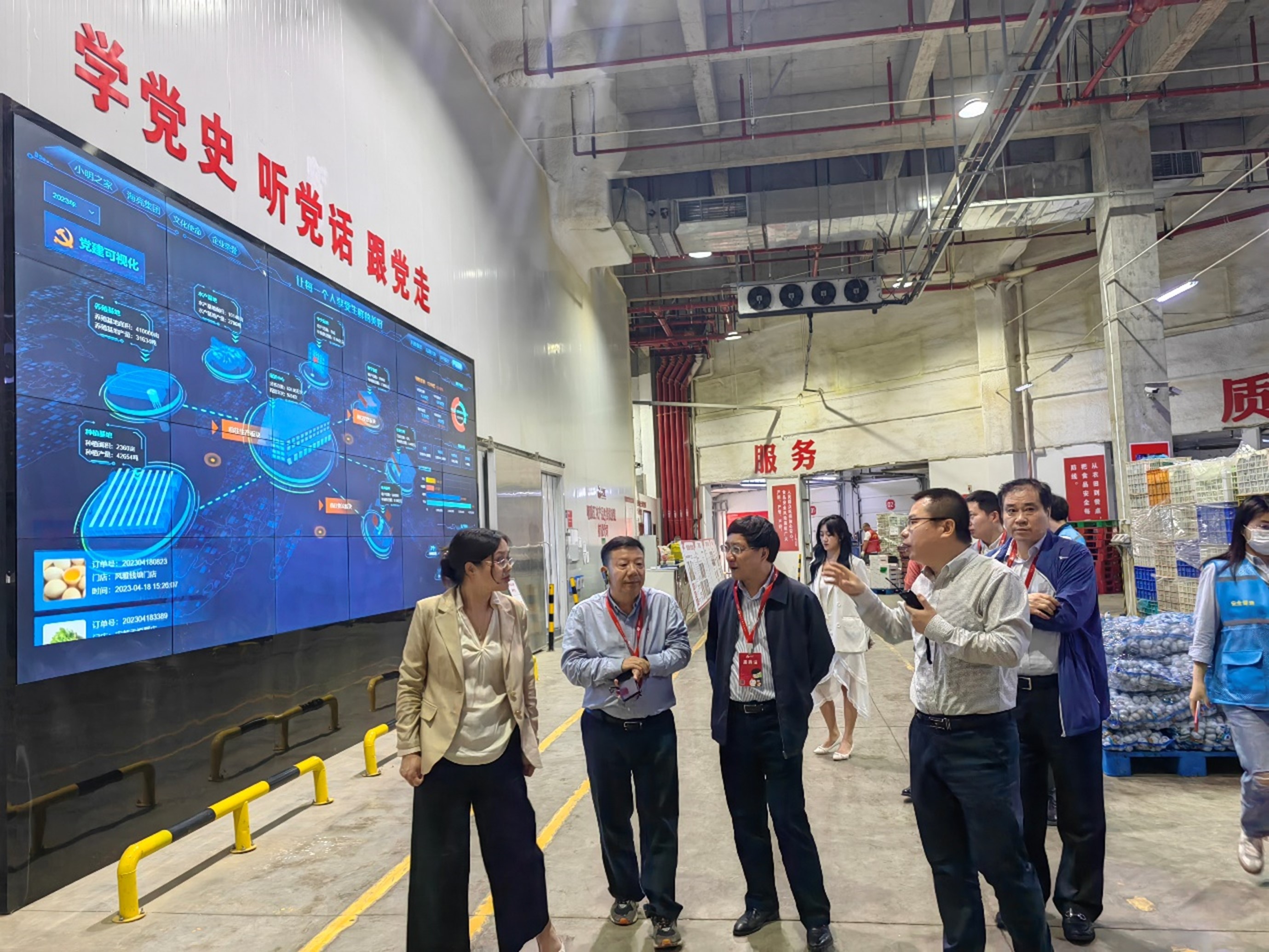 下午,劉春明一行前往海亮明康匯生態(tài)農(nóng)業(yè)集團(tuán)進(jìn)行調(diào)研,了解集團(tuán)經(jīng)營方向、門店運(yùn)營等情況;考察明康匯生鮮一號艙,調(diào)研生鮮數(shù)字化、智能化發(fā)展情況。