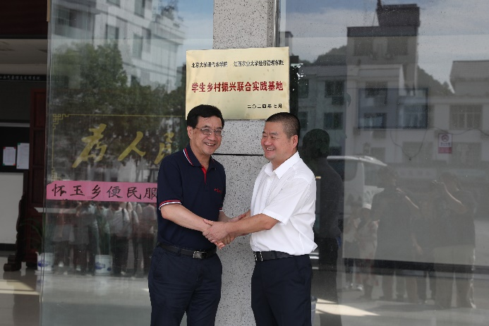 最后,北京大學現(xiàn)代農(nóng)學院院長、發(fā)展中國家科學院院士黃季焜與玉山縣縣委副書記李晨明共同為實踐基地揭牌。