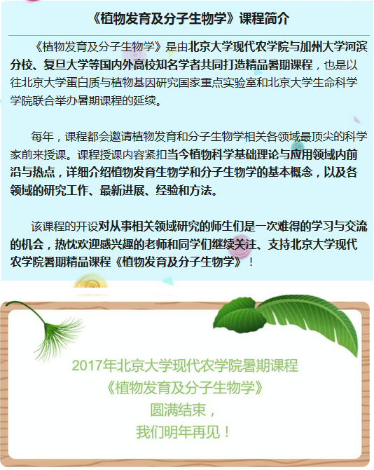 北京大學現代農學院2017暑期課程《植物發(fā)育及分子生物學》圓滿結束