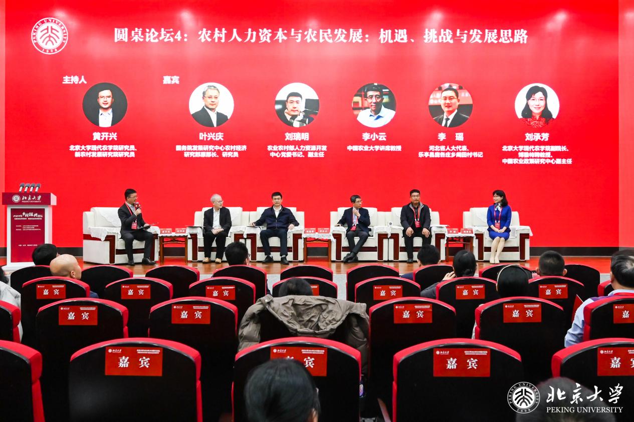圓桌論壇四的主題為“農(nóng)村人力資本與農(nóng)民發(fā)展:機(jī)遇、挑戰(zhàn)與發(fā)展思路”,由北京大學(xué)現(xiàn)代農(nóng)學(xué)院研究員、新農(nóng)村發(fā)展研究院研究員黃開興主持。本次圓桌論壇邀請國務(wù)院發(fā)展研究中心農(nóng)村經(jīng)濟(jì)研究部原部長、研究員葉興慶,農(nóng)業(yè)農(nóng)村部人力資源開發(fā)中心黨委書記、副主任劉瑞明,中國農(nóng)業(yè)大學(xué)講席教授李小云, 河北省人大代表、樂亭縣龐各莊鄉(xiāng)闞田村書記李瑤,北京大學(xué)現(xiàn)代農(nóng)學(xué)院副院長、博雅特聘教授、中國農(nóng)業(yè)政策研究中心副主任劉承芳等與談嘉賓,圍繞農(nóng)村人力資本與農(nóng)民發(fā)展問題分享了自身的實踐經(jīng)驗和研究成果,并展開深入討論。