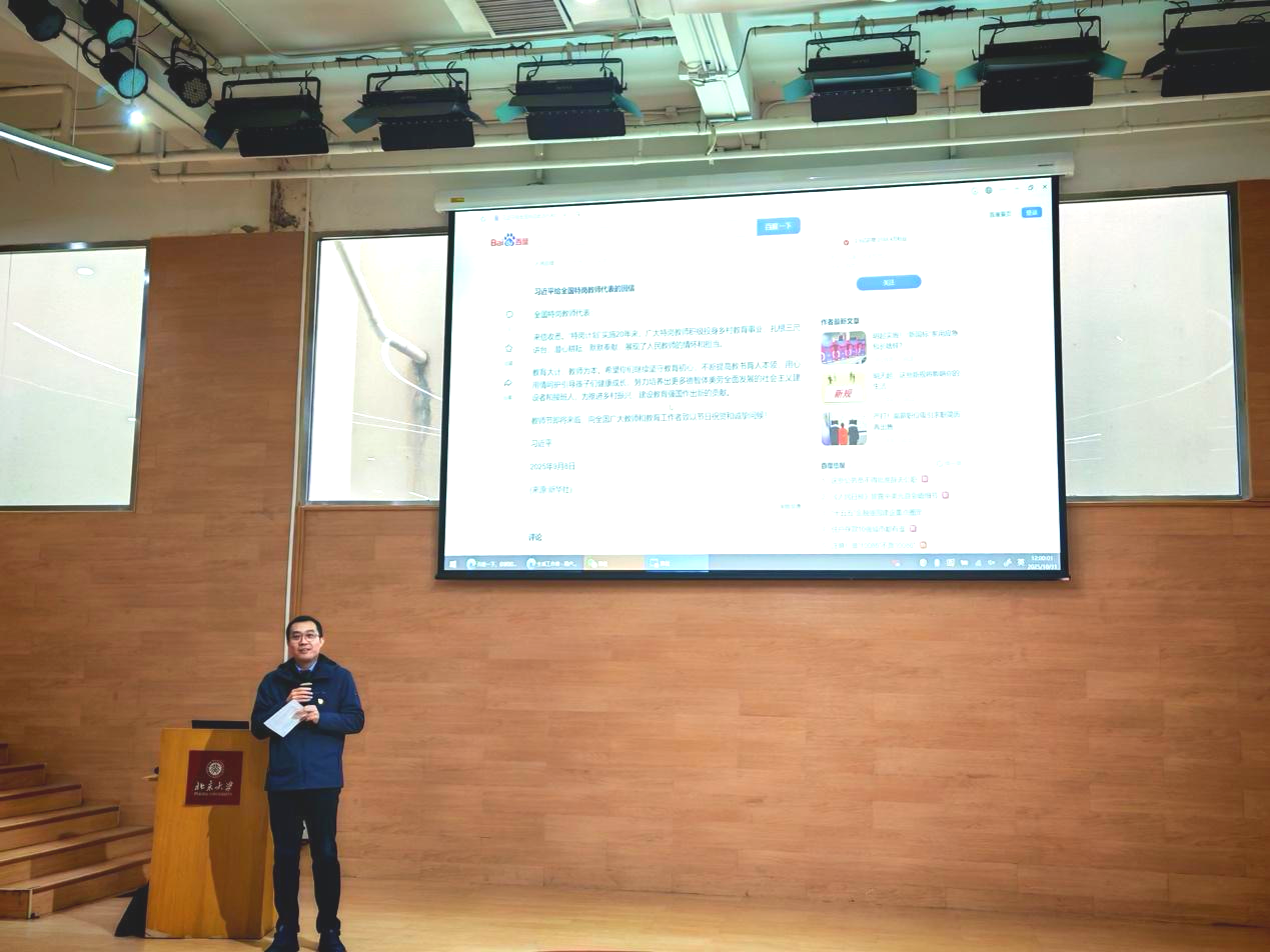 講座后,西鵬帶領(lǐng)師生黨員共同學(xué)習(xí)了《習(xí)近平給全國(guó)特崗教師代表的回信》。西鵬首先回顧了“特崗計(jì)劃”的實(shí)施背景與重要意義,該計(jì)劃自2006年啟動(dòng)以來(lái),有效緩解了鄉(xiāng)村教師數(shù)量不足、結(jié)構(gòu)不優(yōu)等現(xiàn)實(shí)問(wèn)題,為推動(dòng)教育公平、服務(wù)鄉(xiāng)村振興作出了歷史性貢獻(xiàn)。“教育大計(jì),教師為本”,習(xí)近平總書(shū)記的回信不僅是對(duì)特崗教師的關(guān)懷與激勵(lì),更是對(duì)全體教育工作者的殷切期望。西鵬鼓勵(lì)全院黨員教師,要將學(xué)習(xí)貫徹回信精神,與深入學(xué)習(xí)習(xí)近平總書(shū)記關(guān)于教育的重要論述緊密結(jié)合,始終胸懷“國(guó)之大者”,堅(jiān)定政治立場(chǎng),嚴(yán)守師德師風(fēng),落實(shí)立德樹(shù)人根本任務(wù),努力成為學(xué)生心中的“大先生”。