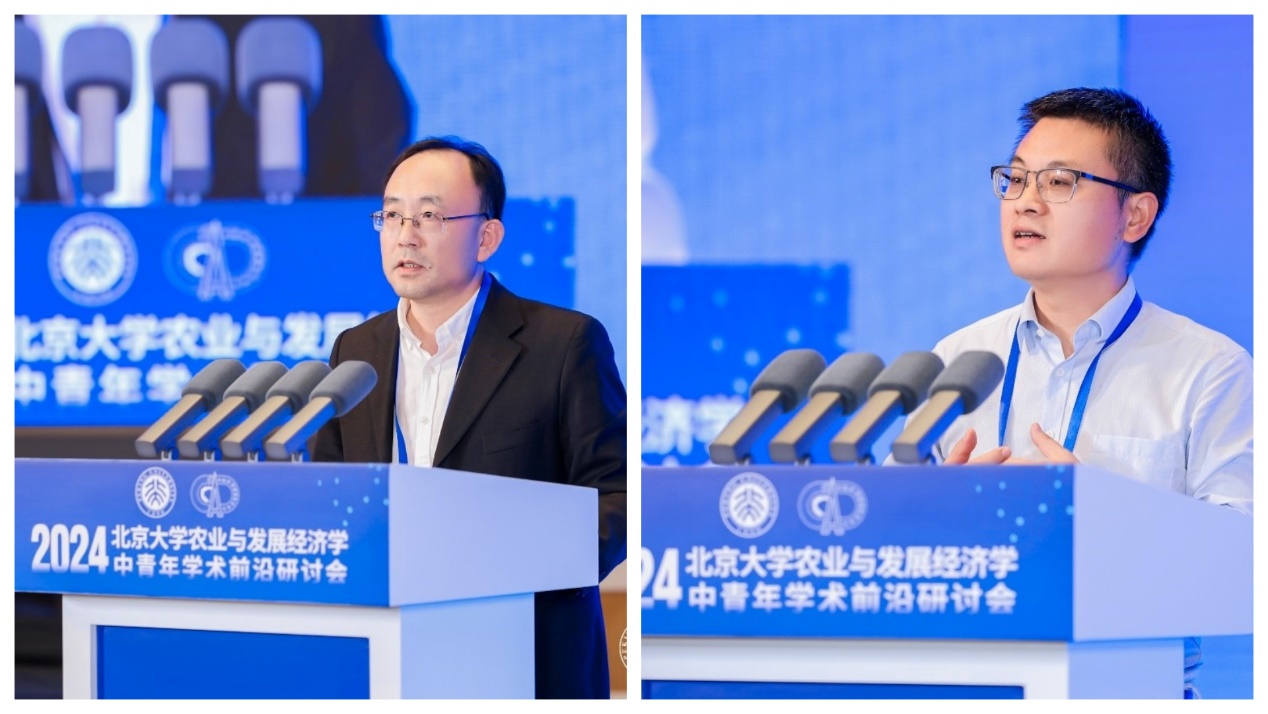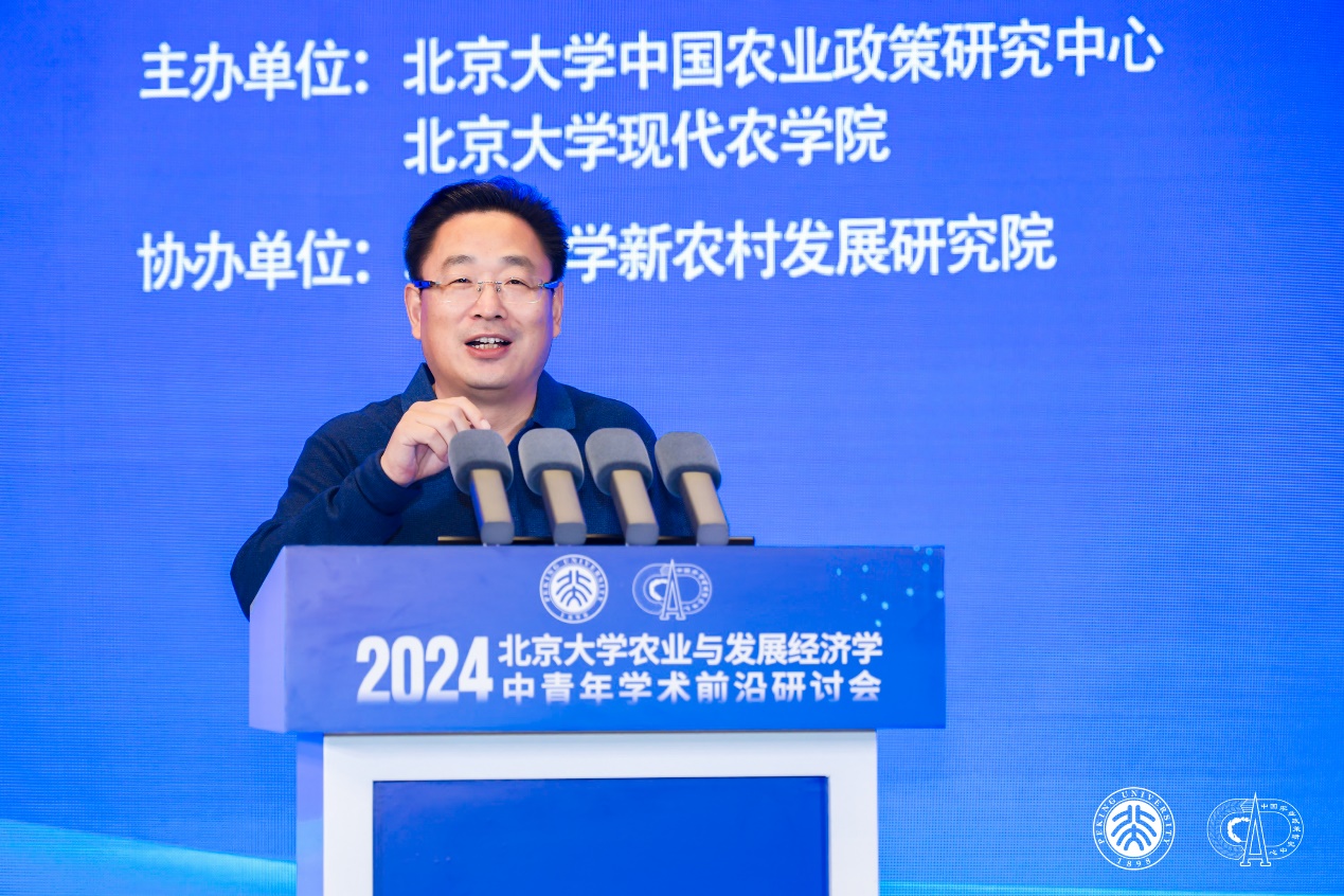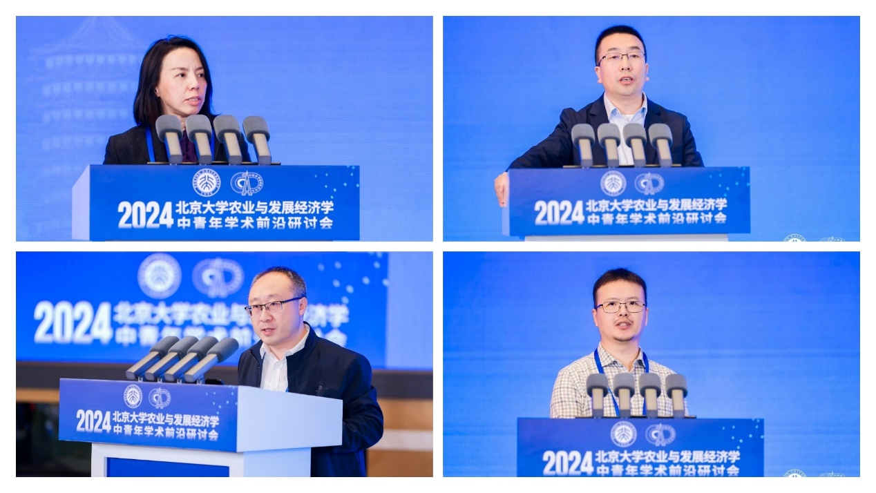 2024年11月10日,北京大學(xué)首屆農(nóng)業(yè)與發(fā)展經(jīng)濟(jì)學(xué)中青年學(xué)術(shù)前沿研討會在北京大學(xué)對外(英杰)交流中心順利召開。本次研討會由北京大學(xué)中國農(nóng)業(yè)政策研究中心、北京大學(xué)現(xiàn)代農(nóng)學(xué)院主辦,北京大學(xué)新農(nóng)村發(fā)展研究院協(xié)辦。本次研討會共邀請來自北京大學(xué)、清華大學(xué)、中國人民大學(xué)、中國農(nóng)業(yè)大學(xué)、南京農(nóng)業(yè)大學(xué)、西北農(nóng)林科技大學(xué)、上海交通大學(xué)、同濟(jì)大學(xué)、中國社會科學(xué)院、中央民族大學(xué)和中南大學(xué)等十余所高校及科研院所的22位優(yōu)秀中青年學(xué)者作主題報告或點評。研討會共吸引300余人現(xiàn)場參會,同時有1.7萬名觀眾通過線上直播平臺觀看會議;參會專家和學(xué)者共同探討了農(nóng)業(yè)經(jīng)濟(jì)、發(fā)展經(jīng)濟(jì)及相關(guān)領(lǐng)域的前沿問題,分享了學(xué)科發(fā)展態(tài)勢及最新研究成果,為推動學(xué)科發(fā)展及學(xué)術(shù)交流合作發(fā)揮了積極作用。本次研討會涵蓋了四個重要領(lǐng)域的主題論壇:糧食安全、生態(tài)經(jīng)濟(jì)、農(nóng)村發(fā)展和數(shù)字經(jīng)濟(jì)。
