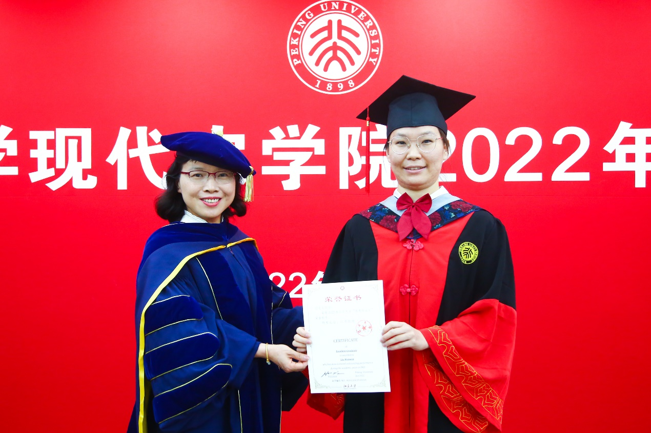 副院長劉承芳教授為2022屆北京市優(yōu)秀畢業(yè)生、2022屆北京大學(xué)優(yōu)秀畢業(yè)生獲得者劉文文同學(xué)頒發(fā)榮譽(yù)證書。