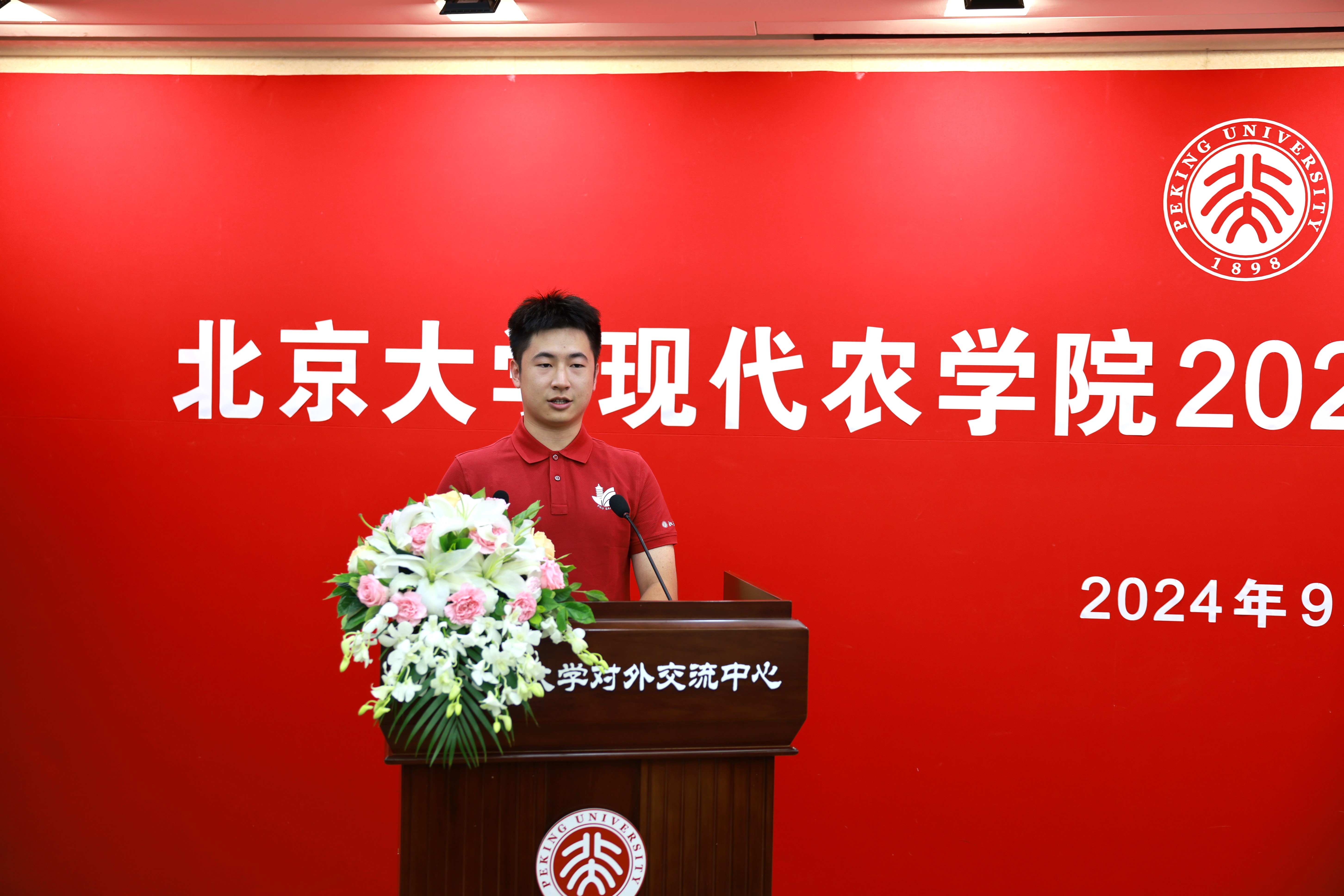 2024級研究生班主任、教師代表王繼縱研究員發(fā)言。王繼縱首先歡迎同學們來到民主與科學交相輝映的北大、來到厚植愛農(nóng)強國情懷的現(xiàn)代農(nóng)學院。他從研究生生涯將會面對的豐富歷程講起,帶領(lǐng)同學們暢想“圓夢北大”“學在北大”和“心系北大”三個階段,希望同學們抓住這三次重要的進步機會,獲得精神、學識、自我的超越,并送上真誠的期待和祝福。
