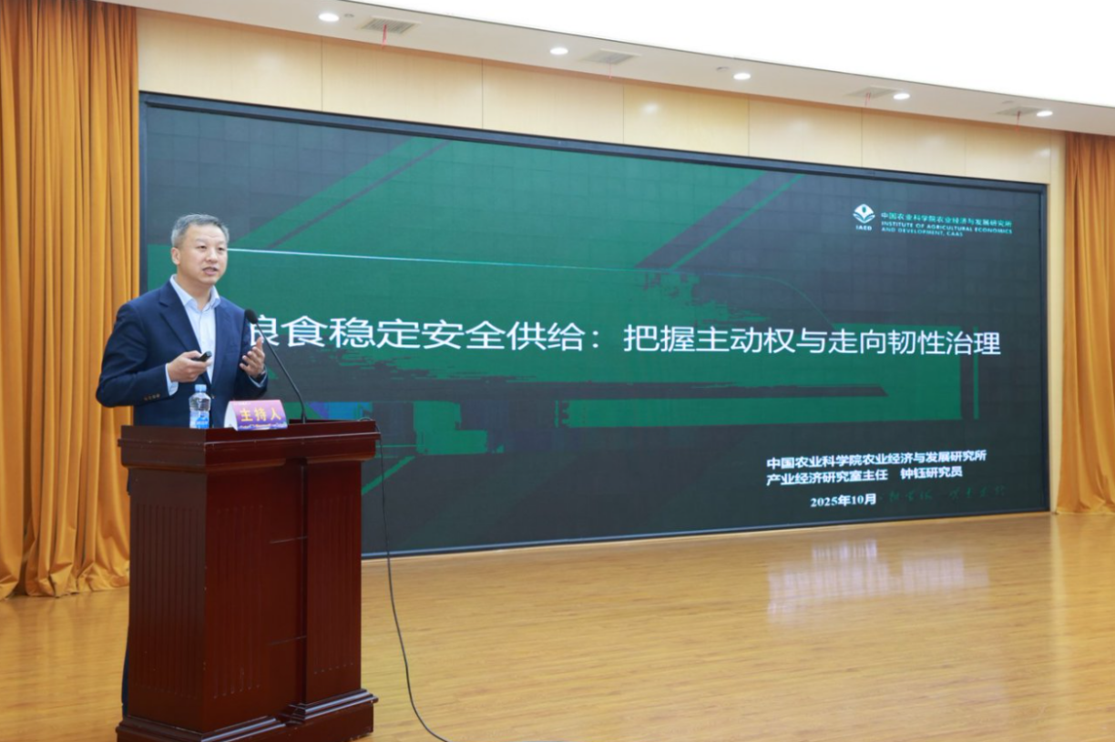 下午,會場共設(shè)置三個(gè)專場及三個(gè)平行論壇,專場一由北京大學(xué)現(xiàn)代農(nóng)學(xué)院黃開興研究員、江西財(cái)經(jīng)大學(xué)農(nóng)業(yè)農(nóng)村現(xiàn)代化研究院院長周應(yīng)恒教授主持。聚焦“人工智能+農(nóng)業(yè)農(nóng)村發(fā)展”主題,長江學(xué)者特聘教授、河南農(nóng)業(yè)大學(xué)經(jīng)濟(jì)管理學(xué)院馬恒運(yùn)教授,華南農(nóng)業(yè)大學(xué)國家農(nóng)業(yè)制度與發(fā)展研究院執(zhí)行院長、經(jīng)濟(jì)管理學(xué)院胡新艷教授,南京財(cái)經(jīng)大學(xué)教務(wù)處處長、經(jīng)濟(jì)學(xué)院朱紅根教授分別以《新質(zhì)生產(chǎn)力:戰(zhàn)略VS戰(zhàn)術(shù)》《農(nóng)地撂荒對糧食安全的影響:基于邊際變化及時(shí)空反饋的考察》《數(shù)字鄉(xiāng)村建設(shè)賦能農(nóng)業(yè)新質(zhì)生產(chǎn)力的理論與效果》為題作專場報(bào)告。參會專家也圍繞《面向“十五五”糧食安全與多元化食物供給》開展專題研討。