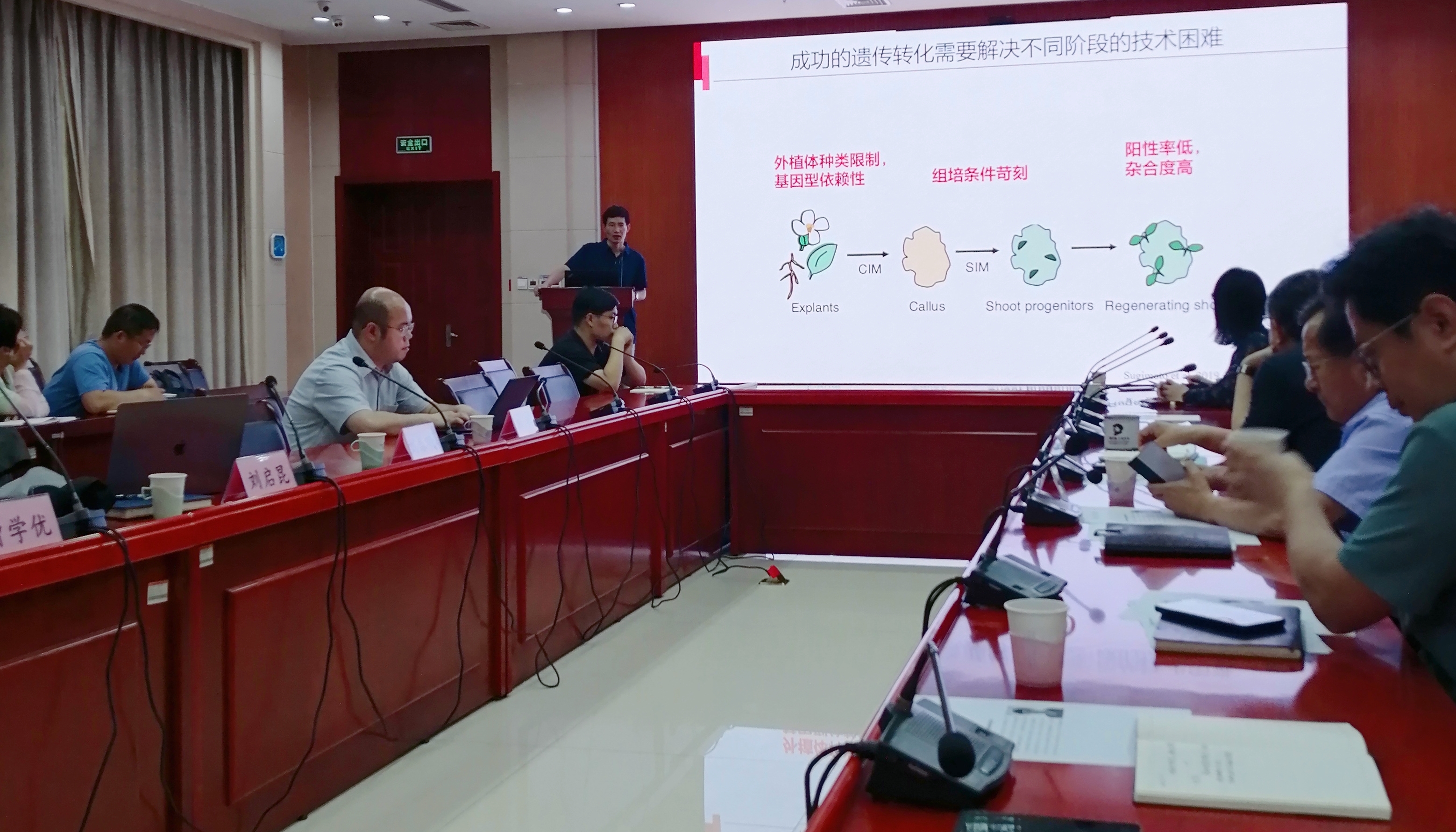 座談會上,解偉以《糧食安全、膳食模式轉型與花生產業(yè)發(fā)展》為題做了報告分享,劉啟昆以《基因的可誘導激活與植物的再生調控》為題做了報告,李國衛(wèi)介紹了山東省農科院在花生研究領域開展的創(chuàng)新性研究及取得的成果。雙方就下一步的學術合作方向和領域進行了深入探討。萬書波表示,后續(xù)將與學院相關團隊建立密切聯(lián)系,充分發(fā)揮各團隊優(yōu)勢,為相關研究提供支持。劉春明表示,現(xiàn)代農學院將進一步推進與山東省農科院在農業(yè)政策及生物技術等領域的深入合作。
