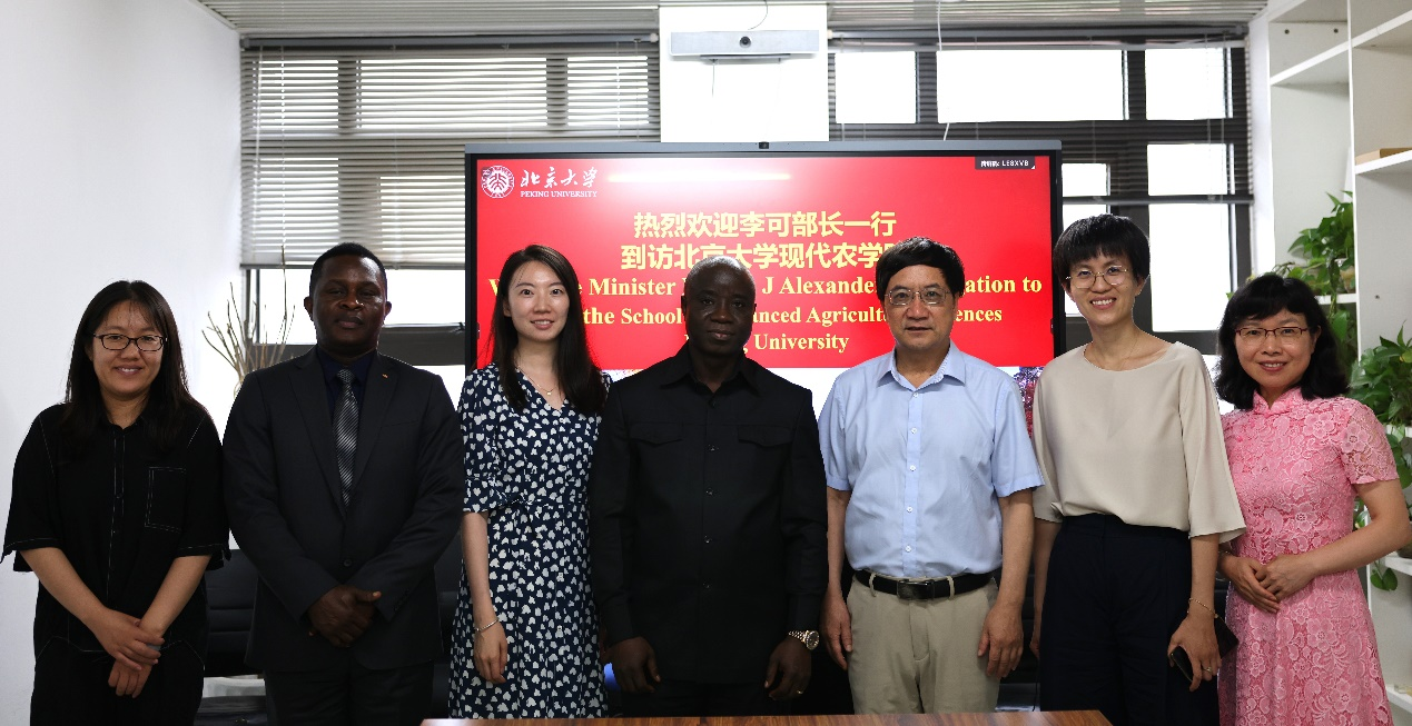 6月21日,利比里亞共和國農(nóng)業(yè)部部長亞歷山大·努塔(Alexander Nuetah)來北京大學現(xiàn)代農(nóng)學院訪問,院長黃季焜教授和副院長劉承芳教授會見了努塔一行并就農(nóng)業(yè)發(fā)展合作事宜進行座談交流。中國農(nóng)業(yè)農(nóng)村部對外經(jīng)濟合作中心非洲處副處長張利利陪同,北京大學國際合作部留學生辦公室副主任李慧芬和項目官員韓易菲出席。