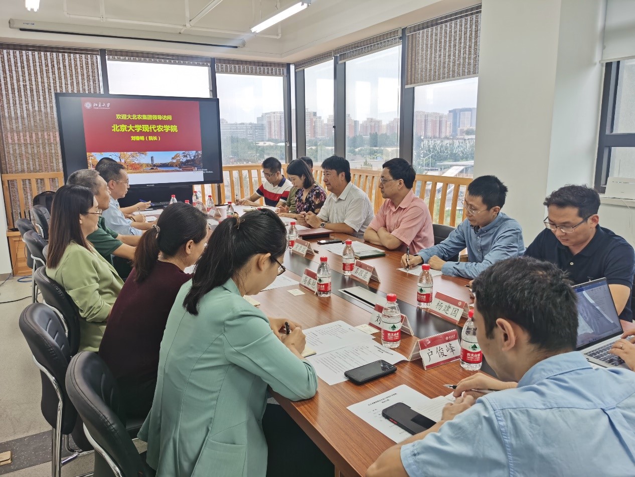 2021年9月16日下午,大北農(nóng)集團(tuán)副總裁、董事局辦公室主任張建忠一行訪問北京大學(xué)現(xiàn)代農(nóng)學(xué)院,并與有關(guān)專家學(xué)者進(jìn)行了座談。大北農(nóng)集團(tuán)總裁助理、中央研究院院長王丹玉,科研獎(jiǎng)辦公室主任張子平,研發(fā)創(chuàng)業(yè)人才中心副總監(jiān)劉偉,作物科技產(chǎn)業(yè)市場拓展總監(jiān)丁德榮,院校合作部總監(jiān)高春艷等人陪同訪問;現(xiàn)代農(nóng)學(xué)院院長劉春明,新農(nóng)村研究院院長黃季焜,副院長兼黨總支書記歐陽曉玲,現(xiàn)代農(nóng)學(xué)院教授、新農(nóng)村發(fā)展研究院副院長盛譽(yù),生命科學(xué)學(xué)院教授、現(xiàn)代農(nóng)學(xué)院兼職教授秦跟基,研究員周岳及楊建國共同出席會(huì)議。
