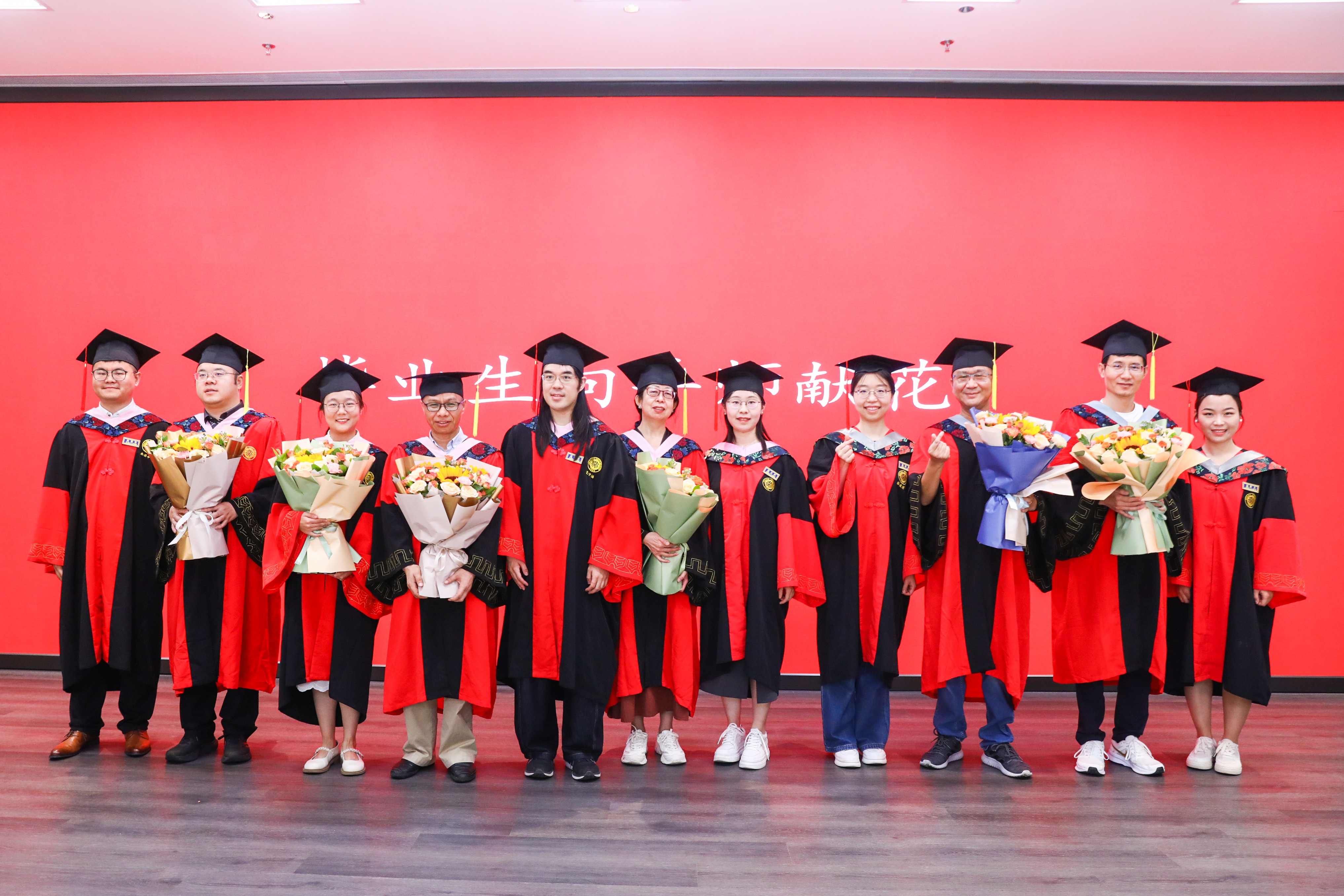 導(dǎo)師是同學(xué)們的領(lǐng)路人,用智慧點(diǎn)燃求知的火種,用嚴(yán)謹(jǐn)塑造治學(xué)的態(tài)度,用堅(jiān)守詮釋科研的精神,用胸懷托起成長(zhǎng)的天空。在畢業(yè)生代表向?qū)煫I(xiàn)花環(huán)節(jié),現(xiàn)場(chǎng)氣氛溫馨感人,畢業(yè)生們手捧鮮花,向辛勤培育他們的導(dǎo)師們表達(dá)最誠(chéng)摯的感謝和敬意。