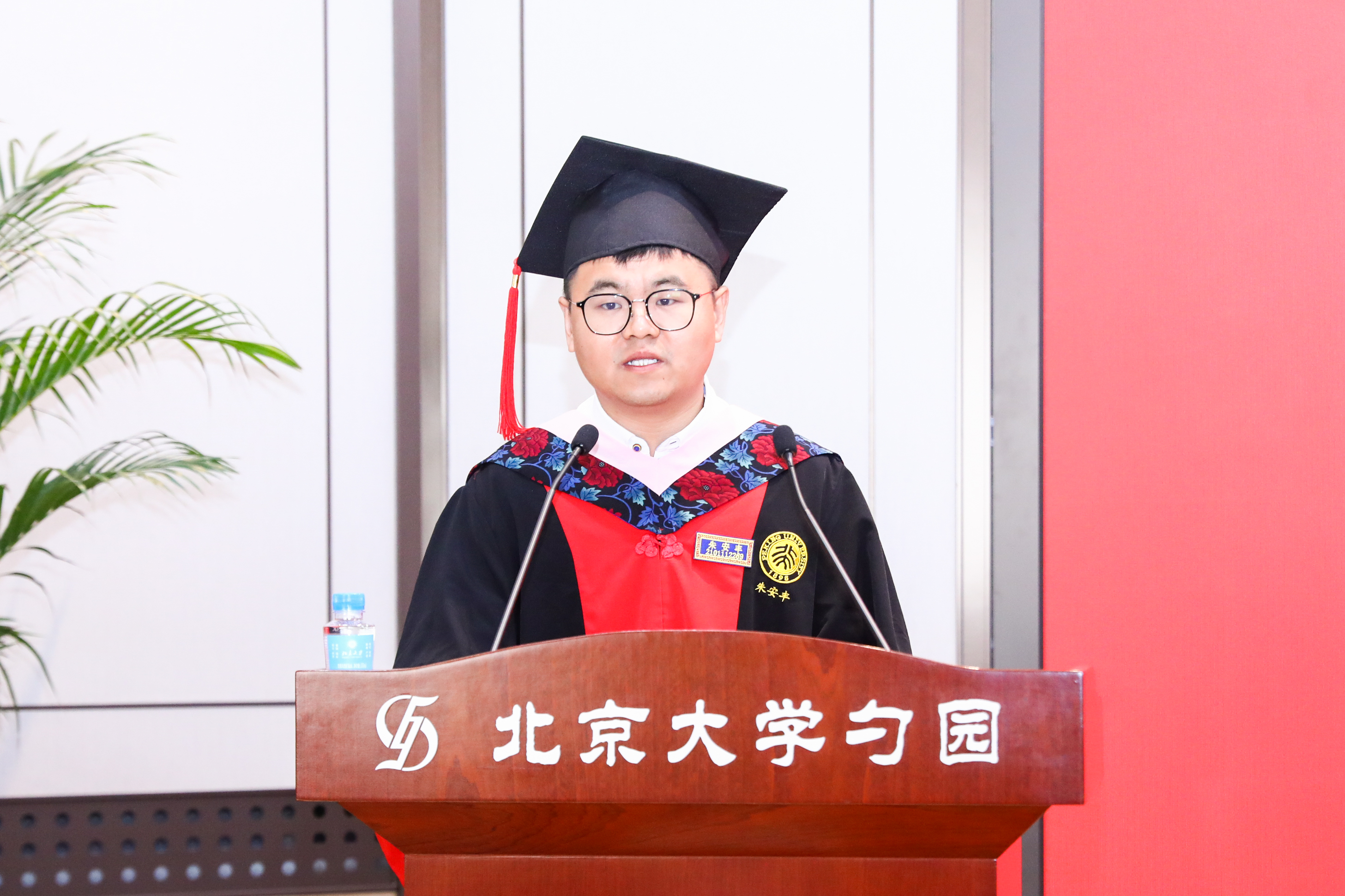 朱安豐作為農(nóng)業(yè)經(jīng)濟(jì)管理專業(yè)畢業(yè)生代表發(fā)言。他認(rèn)為,充滿挑戰(zhàn)的時(shí)代帶來(lái)了應(yīng)該“何去何從”的深刻思考,北大求學(xué)時(shí)光對(duì)此給出的答案是:“問(wèn)題導(dǎo)向”的思維范式、“抽絲剝繭”的分析能力和“明辨慎思”的學(xué)術(shù)品格。他呼吁同學(xué)們?cè)诔錆M不確定性的時(shí)代中把握機(jī)遇,帶著“解民生之多艱”的使命,在鄉(xiāng)村全面振興的廣闊天地中書(shū)寫新的篇章。