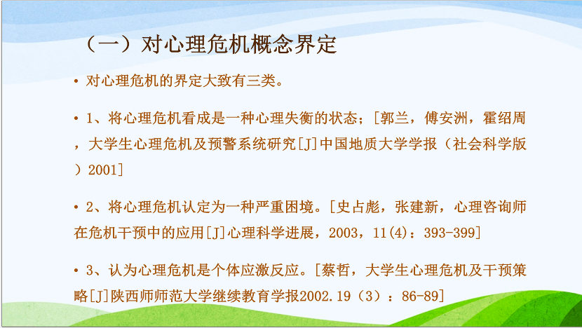 莊明科老師表示,學(xué)生心理危機(jī)具有成長性、階段性和自愈性的特點(diǎn)。要?及早發(fā)現(xiàn)學(xué)生的心理危機(jī),必須?預(yù)先具備相應(yīng)知識技能,多渠道收集心理危機(jī)跡象,?多角度探查心理危機(jī)征兆,?多層次評估心理危機(jī)程度。