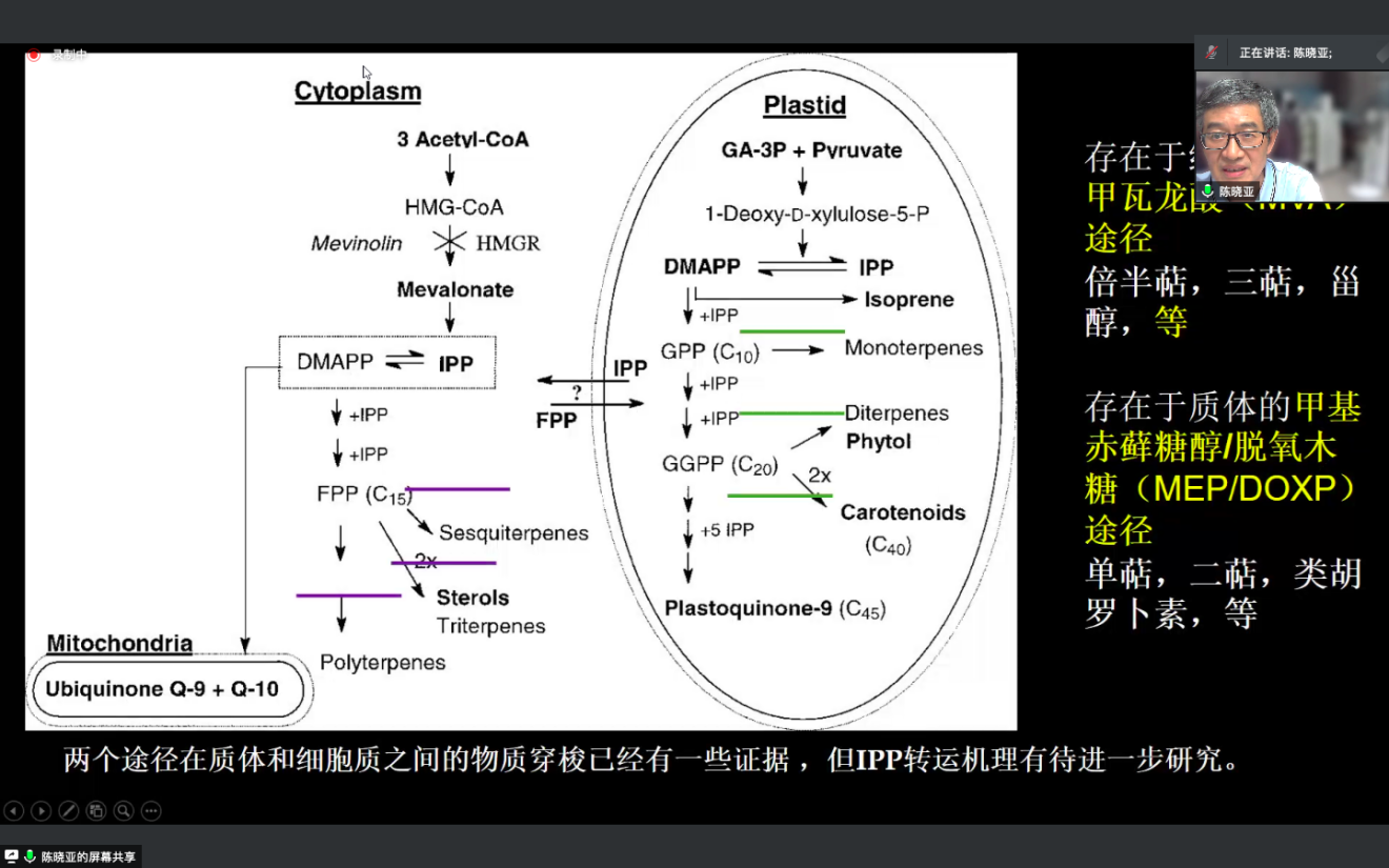 晚間研討會(huì)由鄧興旺老師主持。首先由陳曉亞老師介紹植物次生代謝,尤其是萜類(lèi)的合成調(diào)控。陳老師主要介紹了其課題組在棉酚合成、丹參酮合成以及輔酶Q合成中的工作,鑒定到了多個(gè)合成相關(guān)的酶,為天然產(chǎn)物的研發(fā)奠定了重要基礎(chǔ)。此外陳老師也介紹了一些延伸性的非常有趣的工作,如利用棉花表達(dá)抑制害蟲(chóng)的RNA,為抗蟲(chóng)棉的培育提供了新思路。之后劉耀光老師向大家介紹了水稻雜種不育的分子遺傳機(jī)制,主要講述了水稻秈粳亞種間雜種不育基因Sa和Sc的作用機(jī)理以及克服水稻雜種不育的方法。接下來(lái)趙云德老師介紹了生長(zhǎng)素代謝的調(diào)控,講述了GH3、DAO和ILR1在生長(zhǎng)素儲(chǔ)存、激活和失活中的作用。最后鄧興旺老師介紹了其團(tuán)隊(duì)自主創(chuàng)新的前沿性生物農(nóng)業(yè)的核心技術(shù),包括水稻/小麥/玉米第三代雜交育種技術(shù)的研發(fā)與應(yīng)用以及潔田技術(shù)和潔田模式在大豆玉米間作的應(yīng)用等。