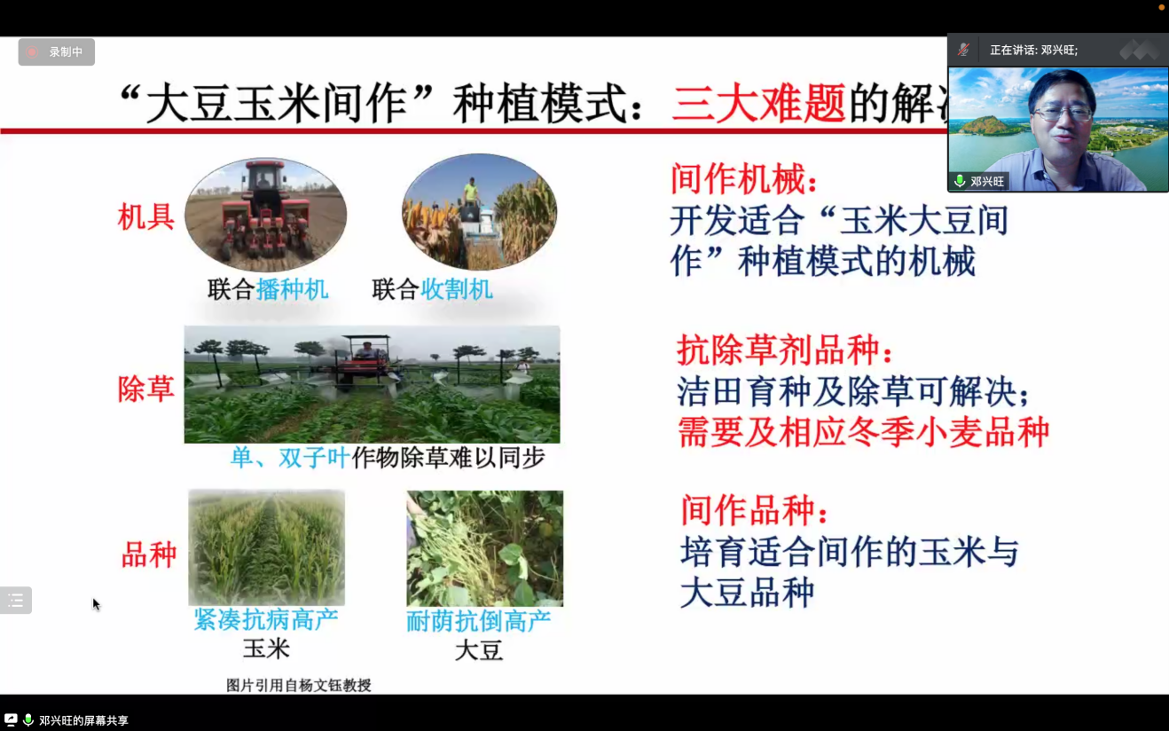 最后一天的暑期課程由鄧興旺老師講授。鄧?yán)蠋熓紫冉榻B了中國(guó)農(nóng)業(yè)發(fā)展的歷史及現(xiàn)狀,農(nóng)業(yè)農(nóng)村農(nóng)民正處于發(fā)展新時(shí)代,北京大學(xué)現(xiàn)代農(nóng)業(yè)研究院應(yīng)運(yùn)而生,關(guān)注農(nóng)業(yè)發(fā)展、關(guān)心農(nóng)村建設(shè)、關(guān)注農(nóng)民福祉。2022年7月10日是北京大學(xué)現(xiàn)代農(nóng)業(yè)研究院于山東省濰坊市正式啟用一周年之際,鄧?yán)蠋煘槲覀兘榻B了一年來(lái)現(xiàn)代農(nóng)業(yè)研究院的建設(shè)與發(fā)展,在不斷發(fā)展與進(jìn)步中通過(guò)科學(xué)技術(shù)的創(chuàng)新實(shí)現(xiàn)“金飯碗”、“菜籃子”、“油桶子”的國(guó)家戰(zhàn)略。隨后,鄧?yán)蠋煄覀冏哌M(jìn)了神奇的植物世界,展示了自然界豐富多樣的植物以及其響應(yīng)外界環(huán)境變化的奇妙現(xiàn)象,有些植物單單存在就美麗,有魅力;群聚而棲時(shí),有智慧,懂謙讓?zhuān)恢参镒鳛榈厍蛏衔ㄒ坏纳a(chǎn)者,提供能量,無(wú)私奉獻(xiàn)。鄧?yán)蠋煂?duì)不同植物的神奇現(xiàn)象的介紹,激發(fā)了同學(xué)們對(duì)植物的好奇和學(xué)習(xí)興趣,開(kāi)拓了眼界。