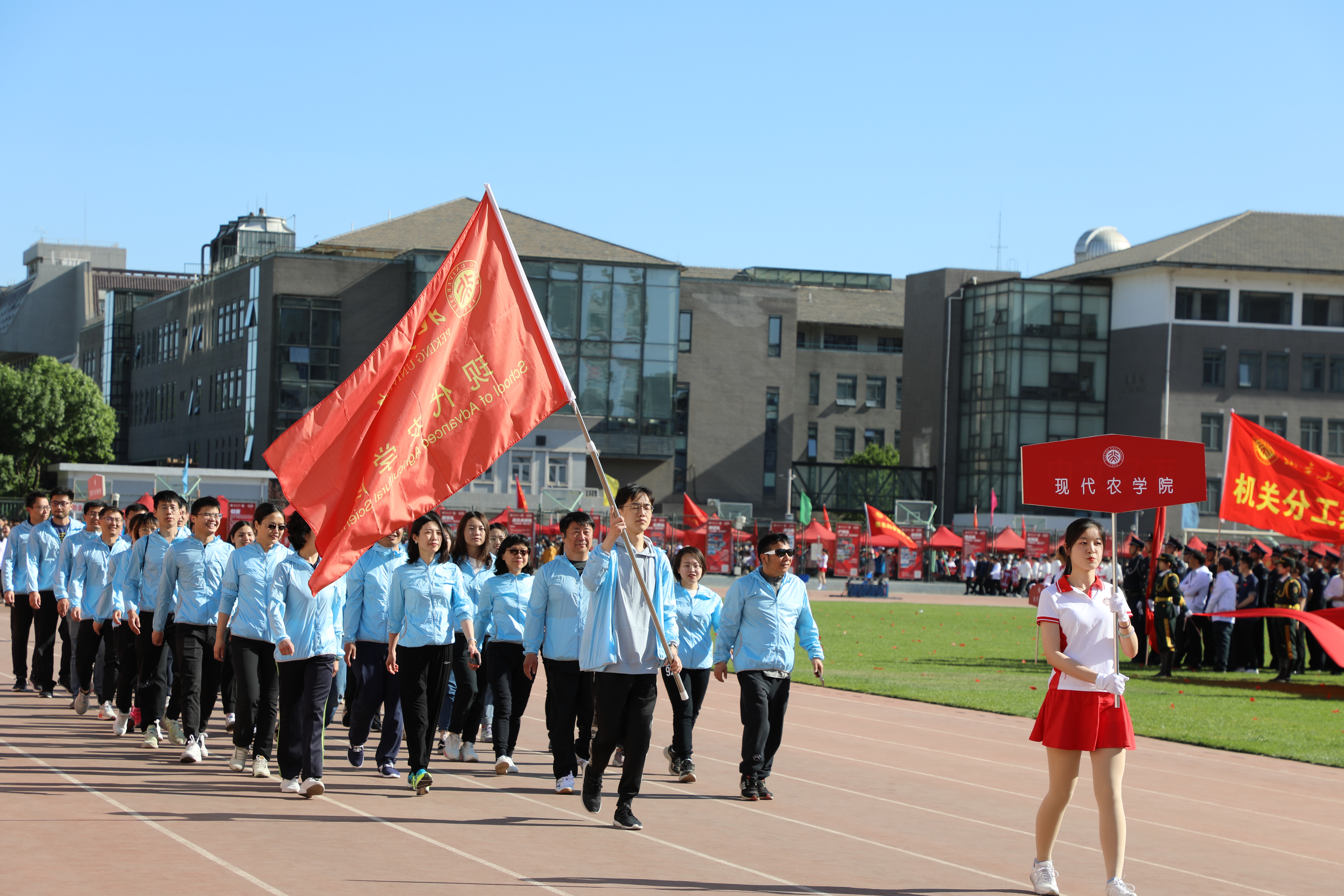 2021年5月7日和8日,以“強(qiáng)體魄,慶百年”為主題的北京大學(xué)第28屆體育文化節(jié)暨2021年田徑運(yùn)動(dòng)會(huì)在五四體育中心舉行。現(xiàn)代農(nóng)學(xué)院秉持“完全人格,首在體育”的理念,積極動(dòng)員、精心組織師生代表隊(duì)先后參加運(yùn)動(dòng)會(huì)開幕式、田徑運(yùn)動(dòng)會(huì)、趣味運(yùn)動(dòng)會(huì)中的多個(gè)項(xiàng)目,展示體育技能、挑戰(zhàn)自我極限、培育團(tuán)隊(duì)精神,展現(xiàn)了學(xué)院師生昂揚(yáng)向上的精神面貌。